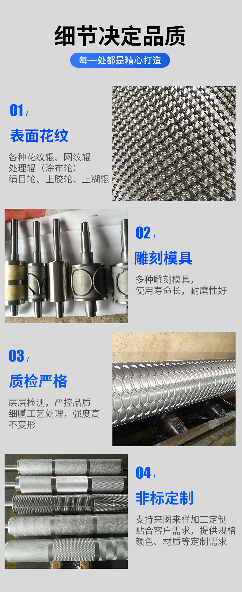 類型 壓花輥 筒直徑 Φ0.6米內(mm) 壁厚 10-50mm(mm) 軸直徑 按需定制(mm) 筒長度 7米內,按需定制(mm)